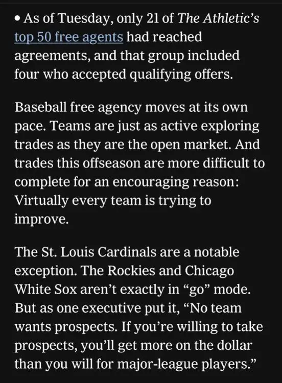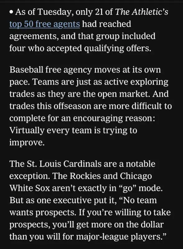 i feel like Rosenthal is putting this out there because buyers want it out there. But really i dont see any evidence of what Ken is saying.. for a few years now teams have been really reticent to trade top prospects. Even for Crochet, we had to take a catcher and an injured guy to get Top 100 guys. Teams now believe other teams are too good at evaluating their guys. Maybe we taught them that in the Semien and Tatis debacles -