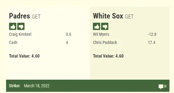 Option 2: Trade Kimbrel to TB for one of Meadows or Kiermaier. I'd love Conforto, but the projections don't see that much of a different between Conforto, Meadows or Kiermaier. Trade for Manaea.