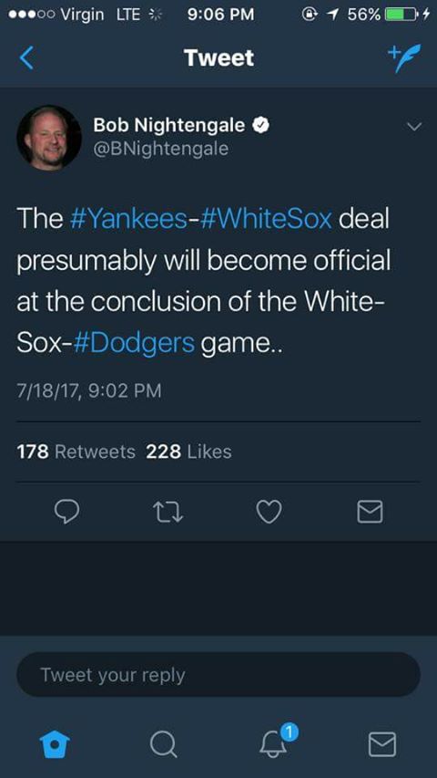 QUOTE (Jose Abreu @ Jul 15, 2017 -> 01:45 PM) Boston Strong @BostonStrong_34 Source; Red Sox are close to a deal with the White Sox for Todd Frazier. This guy is legit Rosenthal; "A Red Sox trade for Todd Frazier is almost inevitable." https://twitter.com/BostonStrong_34/status/...326468405592064 -