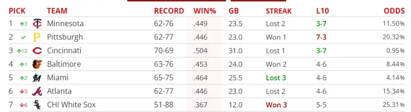 Sorry had a laugh with this. I simmed 10 times and we didnt get the first pick once. We did however get the 7th pick twice, with the cherry on top being the Twins getting the #1 pick. I fully expect our shitty luck to manifest this into being.