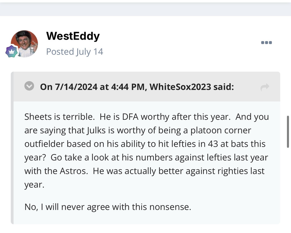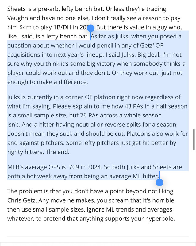 I didn’t highlight the Sheets portion of your post.  I highlighted the Julks portion.  And yes, penciling in Julks into the 2025 lineup last July was just as unreasonable then as it is now.