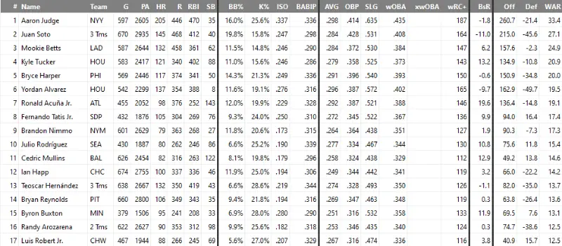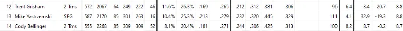 Look at Ray Ray Run Posted December 20, 2024 Share Posted December 20, 2024 1 hour ago, Balta1701 said: When 2 guys play the same position, have nearly the same performance over the last 2 years, and one of them is traded for basically salary relief, I see no reason why people can't discuss whether this is a reasonable comp. Yes, Robert is younger and I'll buy that he has a higher ceiling. He also has an extra year of affordable control. These things push his value up. BUT - if a team can fill an OF spot by taking on $20 million and trading a 30 million year old reliever as literally the only return, they will not part with much in the way of prospect value. Other teams will learn from that - and this will stretch into the season. If teams think they can fill roles without paying prospects, they will consistently do so - that's how the starting pitching market shaped up last offseason, and that is a clear statement about this OF market. For $7 million more this season (plus tax bill) the Yankees got a guy who has matched Robert's performance the last 2 years, who is also a lefty and thus fits their lineup, in exchange for a 30 year old reliever. If that's market price, will Luis Robert ever return the kind of trade that y'all want? The only situation that seems to fit that setup is if he's back onto his 7 WAR player pace and fully healthy at the trade deadline, and even then it's iffy - teams will clearly look for other options if available, and teams will still hesitate because of his injury history. Here's the list of the guys who have accumulated 12.5 WAR as OF'ers since Luis Robert entered the league: and CF'ers specifically: Robert is the 2nd youngest name on the list, and on a rate basis he's the 4th best. Lastly, here's Cody's company over the same window (since Robert debut): And I'm back to square one with having no idea how anyone can compare these two players from a value perspective. Very basic analysis. 4 Quote Link to comment Share on other sites More sharing options...