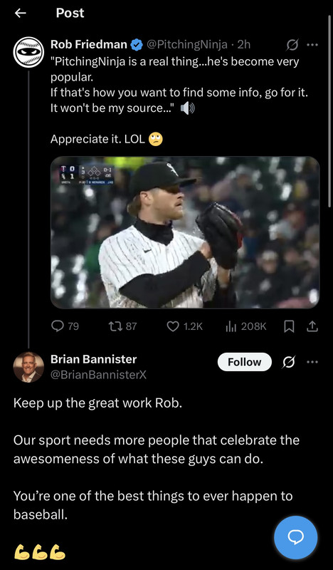 WhiteSox2023 Posted April 2 Share Posted April 2 (edited) 27 minutes ago, fathom said: Just saw the pitching ninja stuff. What a stupid comment. Bannister already followed up on the tweet. https://x.com/BrianBannisterX/status/1907238701756788890 Edited April 2 by WhiteSox2023 2 Link to comment Share on other sites More sharing options...