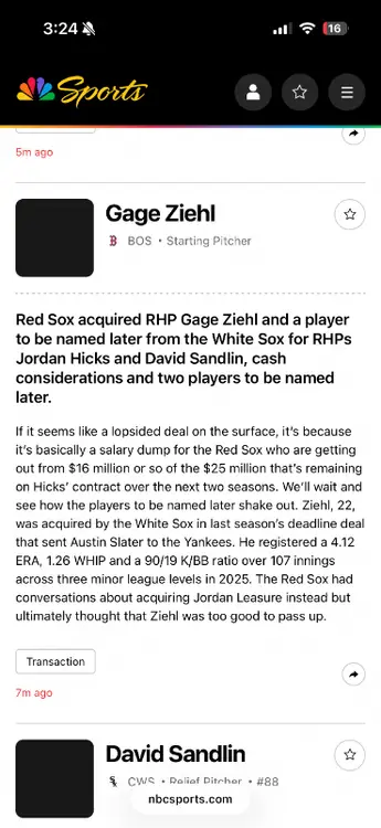 White Sox acquired RHPs Jordan Hicks and David Sandlin from BOS